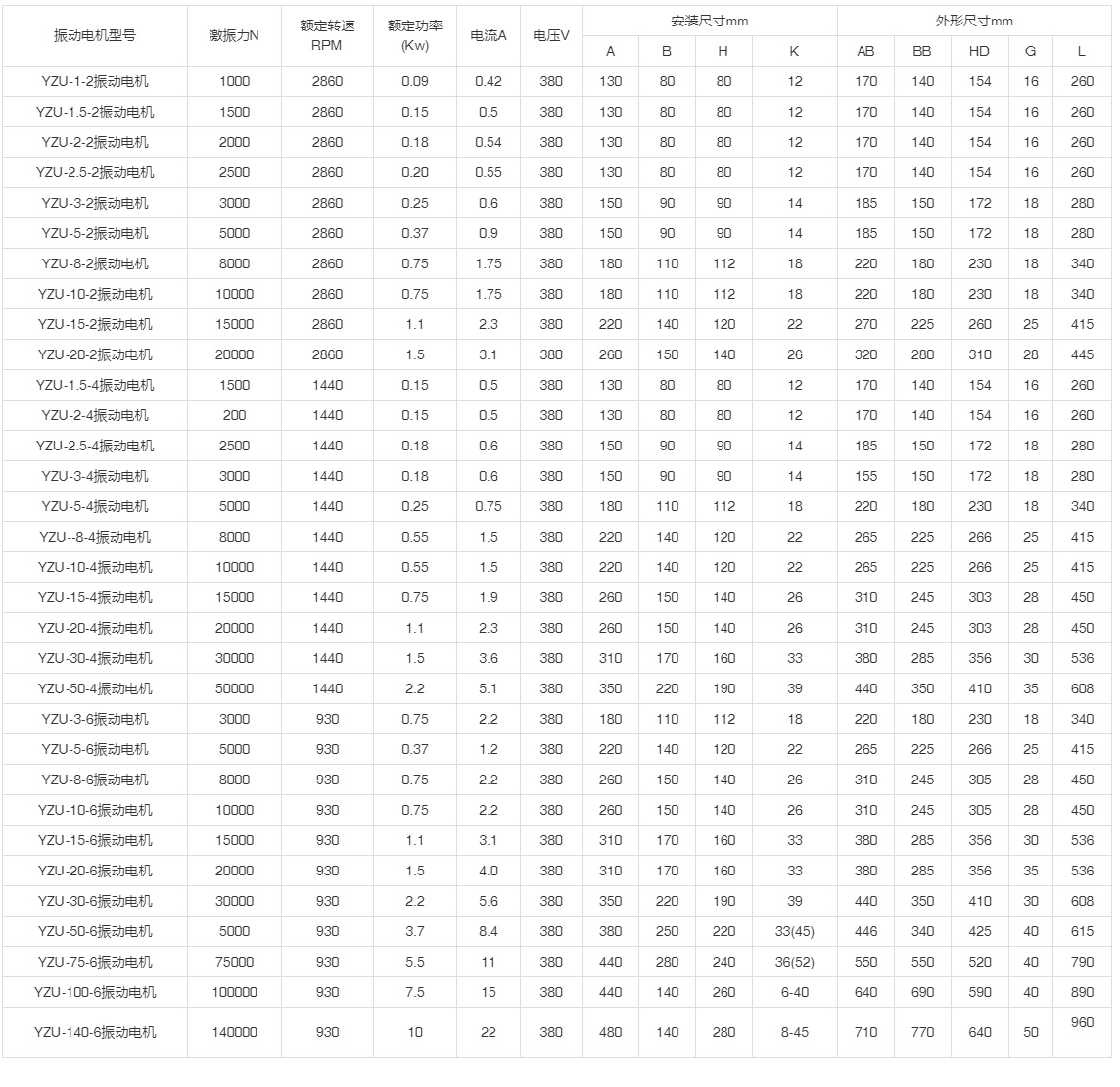 YZU系列振動電機型號齊全,可滿足各種振動篩分設備、行業需要,質量可靠、價格合理,用戶可放心選用。